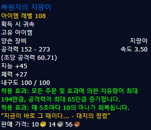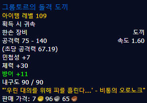 - [68] 정복자 그라인드가르 처치 Dealing With the Overmaster (시작퀘: 현장감독 선다운) 탱반지 / 민첩딜