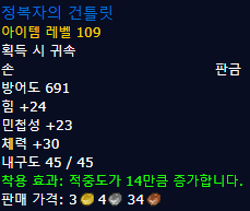 - [67] 승리의 소식 News of Victory  - 시작퀘: 전쟁인도자 라주운 처치!) 민첩 반지/우상/성서