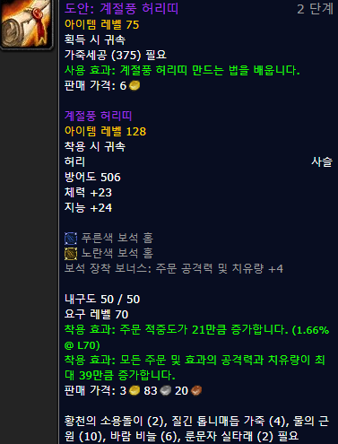 - 더 많은 불성 가죽세공 제작템 정보 와우헤드 링크 :