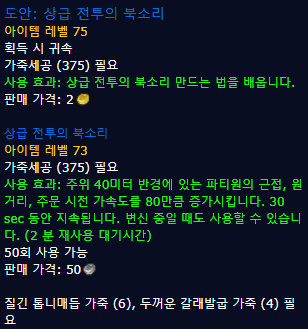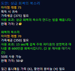 | 370~375 | 공황의 북소리 | 질긴 톱니매듭 가죽 (6), 지옥 통가죽 (4) |