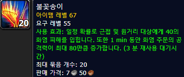 ![]() 불꽃송이는 다른 물약및 생석들과 쿨탐이 공유였지만, 2.2.3패치에서 생석와 마나석만 쿨탐공유로 변경되었습니다. 물약은 따로 사용가능하다고 하는군요. 불꽃송이는 장가르습지대 및 갈퀴송곳니 저수지내 인던에서 발견할수 있는 약초입니다. |