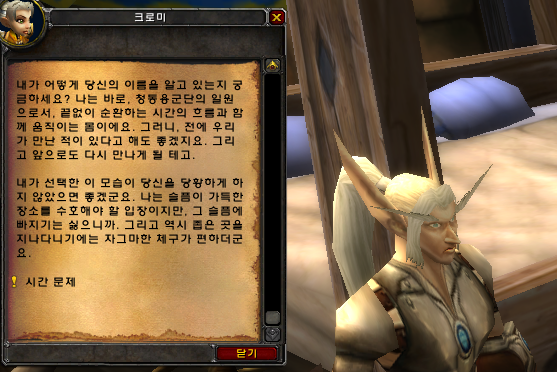 그리고, "시간문제" 퀘스트를 이전에 하지 않은 케릭터는 바로 구매가 안되고 퀘스트를 해야지만 구매할수 있는 창이 생깁니다. (퀘스트 이전에 마친 케릭터는 바로 구매가능)