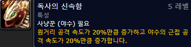 : 특성 자세히 보기 링크 : ko.tbc.wowhead.com/talent-calc/hunter/502030005152120531051-0505201205