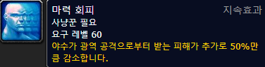 - 동물 치료 : 요구 레벨 68 (클래식과 다르게 즉시시전됩니다. - 도트힐 방식)