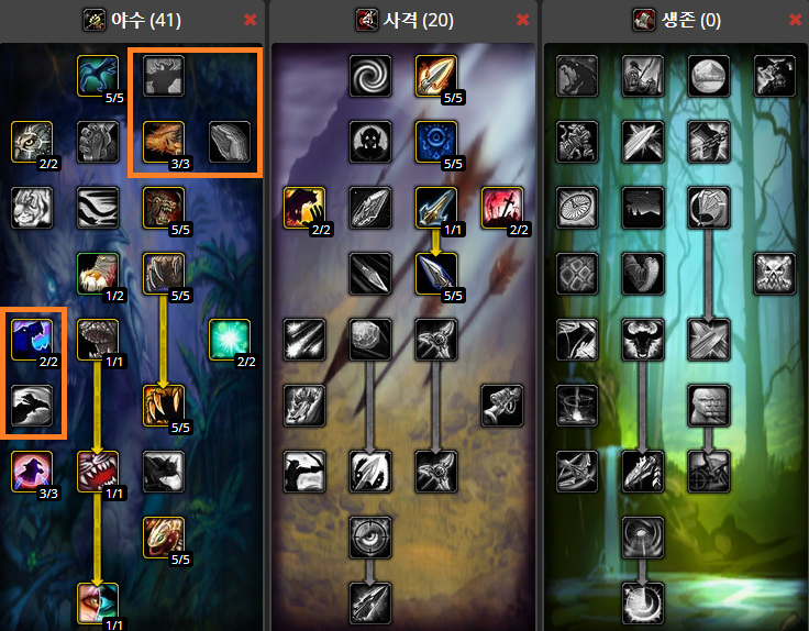 : 특성 자세히 보기 링크 : ko.tbc.wowhead.com/talent-calc/hunter/502030005152120531051-0505201205