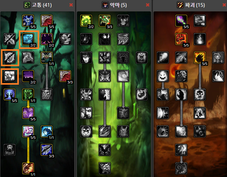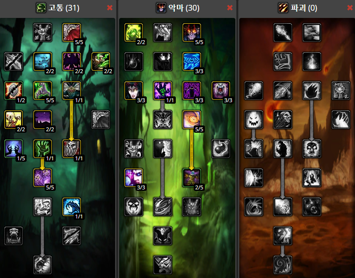 - 특성계산기에서 보기 : ko.tbc.wowhead.com/talent-calc/warlock/550220001023510551031-23-5050005