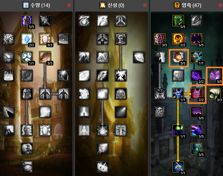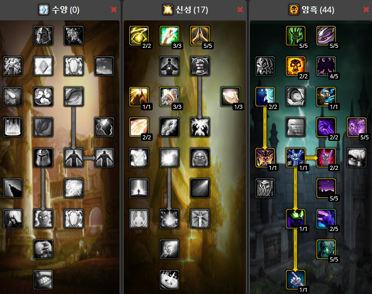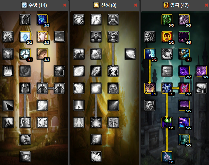 - 특성계산기에서 보기 : ko.tbc.wowhead.com/talent-calc/priest/050230013--550242010251120051551