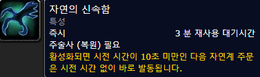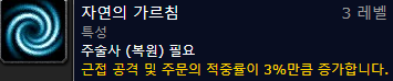 - 자연의 가르침 특성으로 근접과 주문 적중 3%를 올릴수 있습니다.