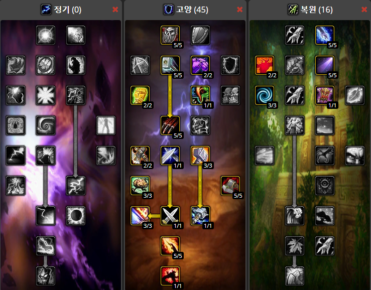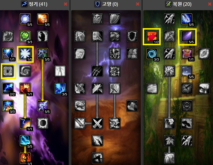 - 특성계산기에서 보기 : ko.tbc.wowhead.com/talent-calc/shaman/-500520210502133531151-05205301