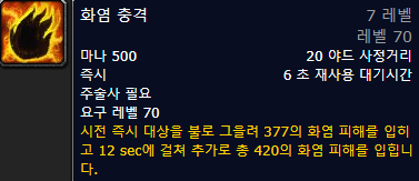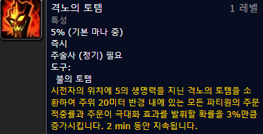 토템을 항상 소환하고, 대상에 " 화염 충격 (시전 즉시 대상을 불로 그을려 377의 화염 피해를 입히고 12 sec에 걸쳐 추가로 총 420의 화염 피해를 입힙니다.)" 을 사용합니다.