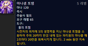 토템을 상황에 맞게 사용합니다. - 마나샘 토템 / 치유의 토템 / 마나해일 토템