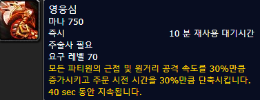 또는 전투의 북소리 ( 30초동안 공격 및 주문 가속 80증가 )