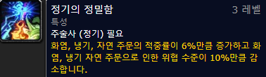 " 정기의 정밀함 " / " 자연의 가르침 " / " 격노의 토템 " 3가지 특성으로 12%의 주문적중을 맞출수 있습니다.