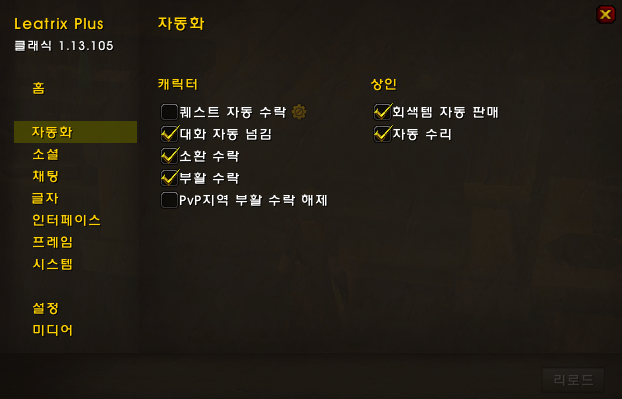 # Leatrix Plus (World of Warcraft Classic) : 여러가지 확장 기능을 제공하는 애드온입니다. 자동수리/퀘스트 자동수락/파티초대수락/부활자동수락/ 전문기술창 확장/ 퀘스트창 확장 등등