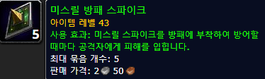 미스릴 방패 스파이크 : 방어시 16 - 20 데미지