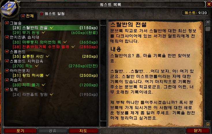 - 종족 시작 지역에 사람이 많아서 퀘스트 속도가 느려질 수 있습니다. 법사 포탈이나 흑마 소환을 이용하여, 다른 종족 시작 지점에서 퀘스트를 하는 것도 좋은 방법 입니다.