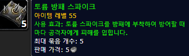 토륨 방패 스파이크 : 방어시 20 - 30 데미지