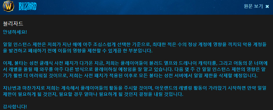 - 5월 20일 소불성이 열리면, 사전패치후에 드레나이와 블러드엘프를 플레이할수 있게됩니다.