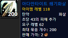 | 361 ~ 375 | 코륨 조준경 | 강화된 아다만타이트관(1), 코륨 주괴 (4), 여명석 (2) 도안 드랍 : 황천의 폭풍 지역 듀로마나괴철로 부근 성난태양 궁병 |