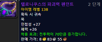 - 캘타스 드랍 ( 모든 아이템 목록 정보 링크 - 와우헤드 )
