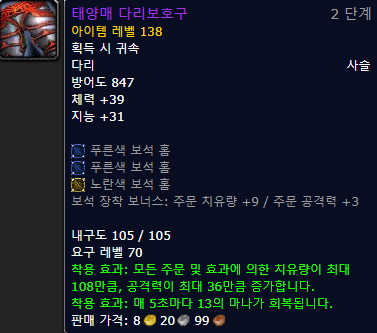 - 솔라리안 드랍 ( 모든 아이템 정보 링크 - 와우헤드 )