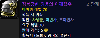 : 어둠달골짜기의 긴 연퀘와 함께 영던4곳과 마그테리돈둥지를 가야하기 때문에, 생각보다 오랜 시간이 필요합니다. 9월 16일에 콘텐츠2단계에서 열리니 미리 준비하시는게 좋을것 같습니다.