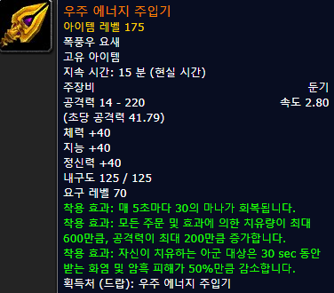 우주 에너지 주입기 (둔기)![]() 착용 클래스: 모든 힐러 |