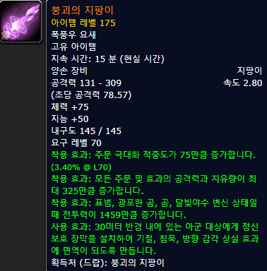 붕괴의 지팡이 ![]() 착용 클래스 : 암사/흑마/법사/야드/조드/정술 |