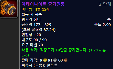 - 알라르 드랍 ( 모든 아이템 보기 링크 - 와우헤드 )