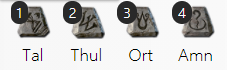- 4소켓 방패(이름이 회색인것) + 탈(Tal) + 주울(Thul) + 오르트(Ort) + 앰(Amn) 룬 순서대로 넣으면 완성.