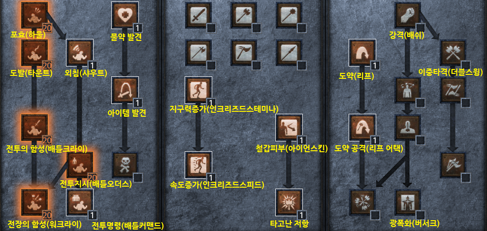 - 포효(하울) : 전장의 함성 시너지 스킬로 필요.