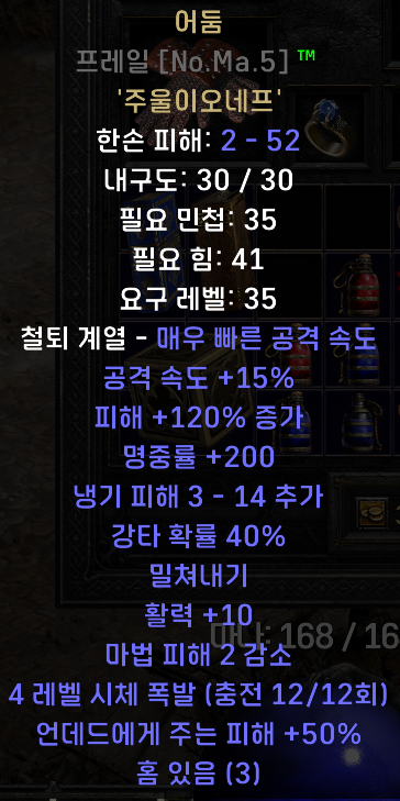 이 문제를 해결하기 위해서, 스왑무기로 강타옵션이 붙은 무기를 이용하면, 좀 더 빠르게 클리어가 가능합니다.
