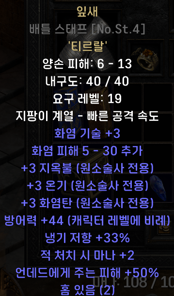 19레벨에 잎새를 제작할분들은 액트2 드로그난에게서 2소켓 스태프를 구한 후 만들어줍니다.