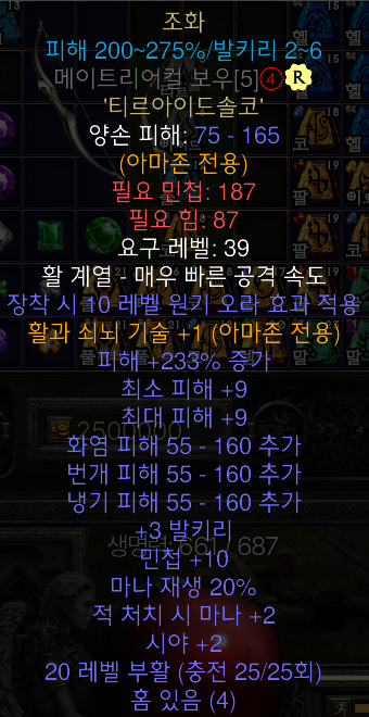- 4소켓 원거리 무기 + 티르 + 아이드 + 솔 + 코