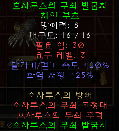 비슷한 레벨에 착용가능한 극지 갑옷과 장갑을 같이 사용하면 초반 아주 높은 방어력을 가질 수 있다.