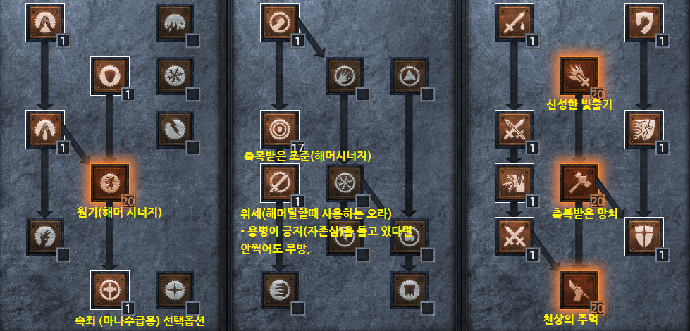 : 천상의 주먹과 해머를 같이 사용하는 특성 빌드입니다.