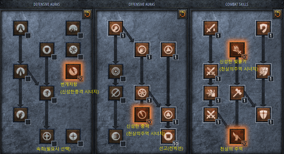 사실, 신성한 빛줄기와 천상의 주먹만 만땅으로 찍으면 나머지는 모두 개인취향이라고 보시면 됩니다.