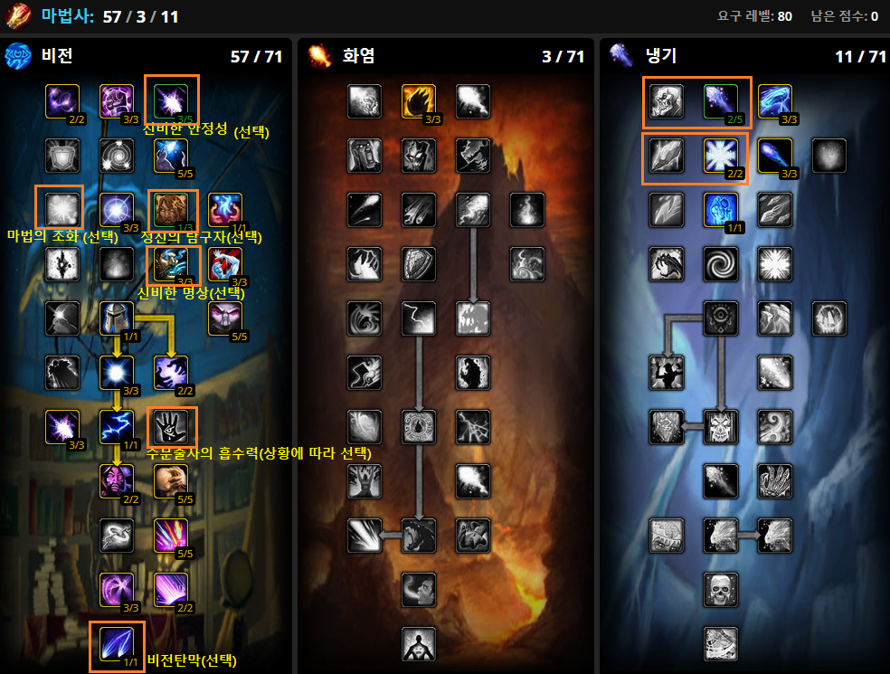 - 비전 마법사 특성 빌드 ( 57 / 3 / 11 ) -