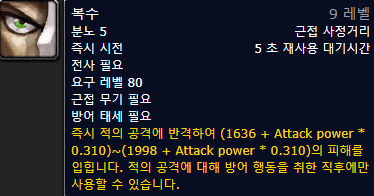 *복수 매크로 #showtooltip 복수 /cast 방어 태세 /cast 복수 /cast 회전베기 /startattack |