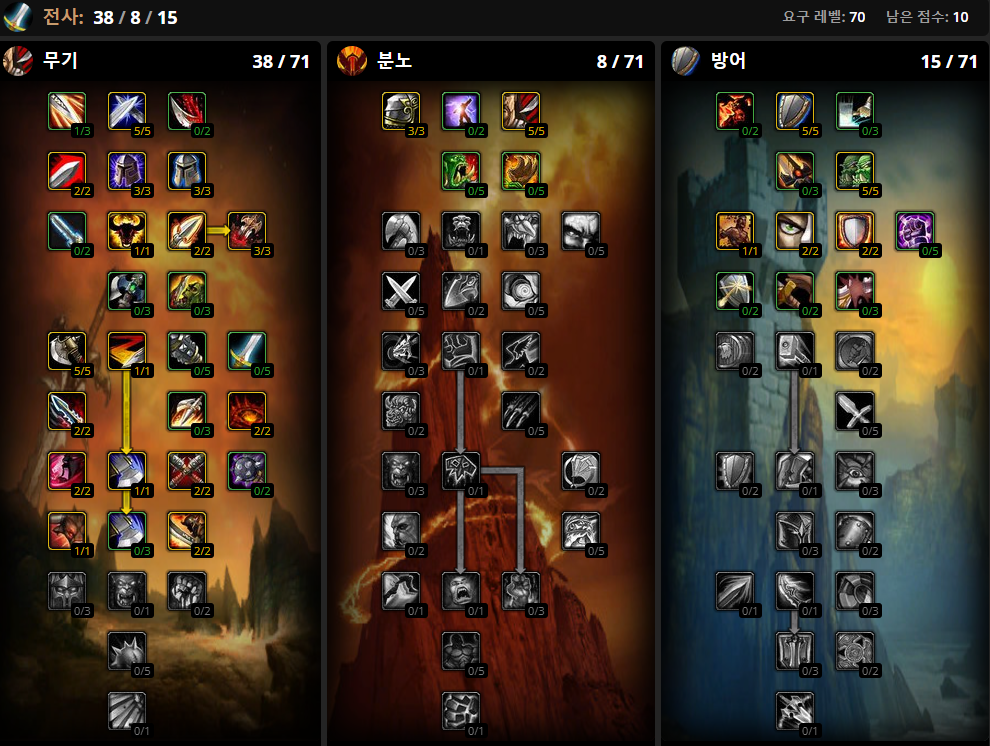 위 특성은 레벨링용 특성이며 인던 탱킹용 특성은 아닙니다. 탱킹용 특성은 아래쪽에 따로 정리했습니다.
