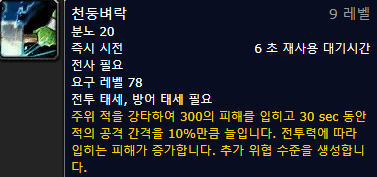 * 천둥벼락 /cast 천둥벼락 /cast 회전베기 *방밀 /cast 방패 밀쳐내기 /cast 회전베기 |