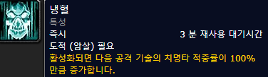 전투쪽의 폭풍 칼날과 아드레날린 특성을 찍었기 때문에, 폭칼, 아드 , 냉혈 을 모두 사용할 수있습니다.
