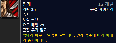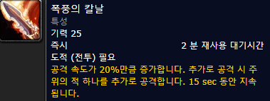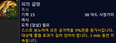 피의 격노(15초 동안 전투력 증가 - 레벨에 따라 다름 , 2분쿨)