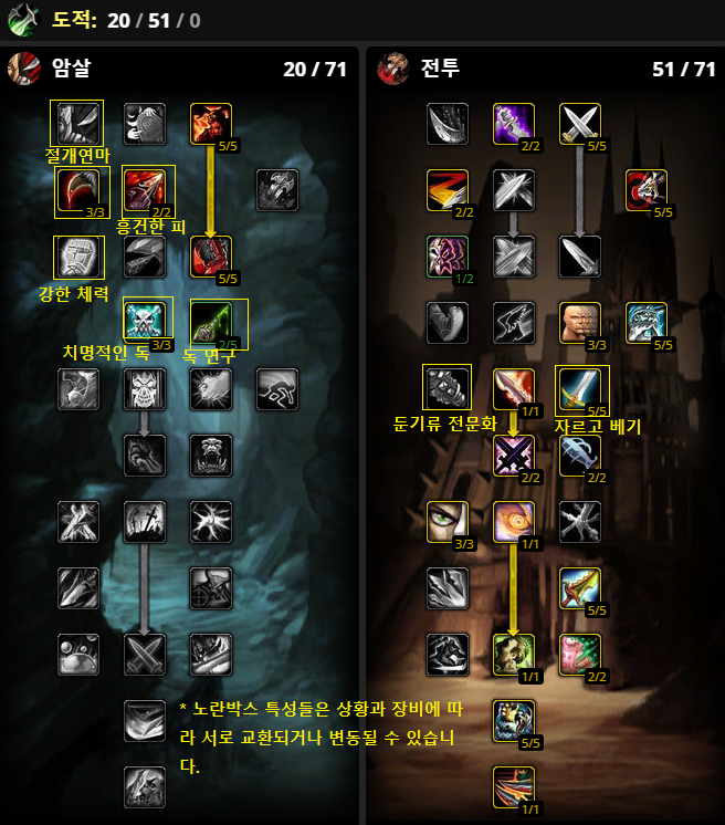 - 추가 영상 광역데미지에 집중한 하이브리드 (암살+전투) 도적 특성입니다. https://youtu.be/SO3ZhKEFV8w