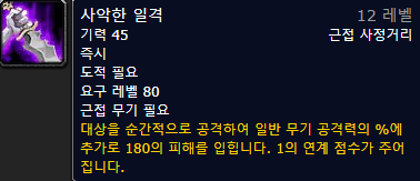 주문양 : 사악한 일격의 문양 (사악한 일격으로 치명타를 적중시키면 50%의 확률로 추가 연계 점수를 얻습니다.)