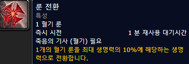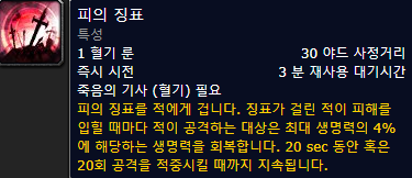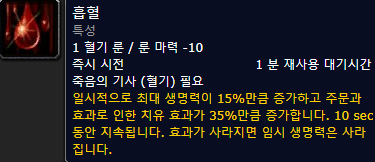 - 죽음의 기사 혈기탱 주요 스킬 -
