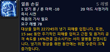 1. 얼음 손길 : 서리열병을 걸리게하며, 위협수준을 크게 증가시키게 하는 주된 스킬.