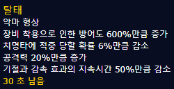 탈태 스킬의 경우 가능한 자주 사용하는것이 좋지만, 2분쿨(천벌특성)에 30초 지속 (탈태문양사용시 36초 지속)이 되므로, 탈태 지속시간을 모두 사용할 수 있도록 시간을 계산해서 적당한 타이밍에 사용하는것이 좋습니다. 보스별 공략 및 전투시간에 따라 적절한 타이밍에 사용하시기 바랍니다. |