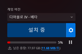 현재 베타버전 디아4 미리설치가 가능하네요. 그런데 용량이 무려 85기가가 넘습니다. 베타는 용량이 45기가라고 했던것 같은데, 예상과 다르게 용량이 무지 크네요. 배틀넷에서 게임버전을 디아블로4 베타로 선택하시면 설치 가능합니다. |