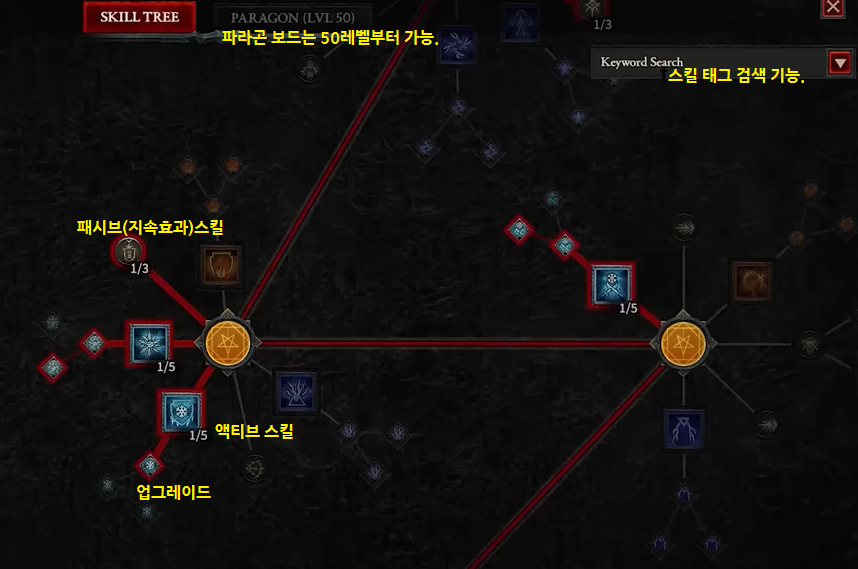 - 스킬트리와 파라곤(정복자) 보드